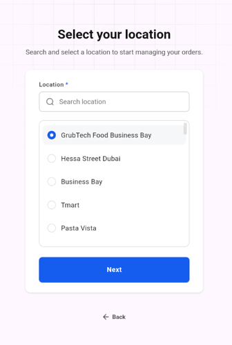 💡 Note: If your account is not assigned to any location, you will not be able to access grubOne.