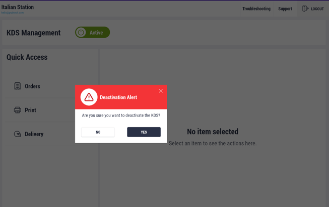 - Select Yes to proceed with the deactivation, or No to disregard the action.